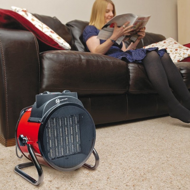 This energy efficient electric heater uses Positive Temperature Coefficient (PTC) technology, enabling fast, high volume, heat output from switch-on. Designed for use in enclosed spaces up to 35 square metres in size. This high output heater has a built-in thermostat that can maintain a constant room temperature. There is a fan and two heat settings, and the stainless-steel heater element is fitted with dual overheat safety protection. It has a compact design with a tough steel shell fixed to a steel tubular frame with adjustable tilt to direct airflow.
