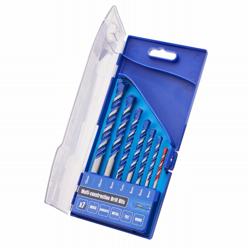This 7 piece Faithfull Multi Construction Drill Set contains sizes: 4, 5, 6, 7, 8, 10 and 12mm.