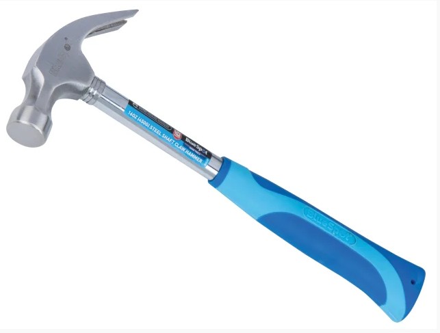 The BlueSpot Steel Shaft Claw Hammer features a contoured handle for a more secure grip. Its steel shaft reduces fatigue and increases shock absorption during prolonged use. The striking face has a bevelled edge to protect against chipping the hammer.