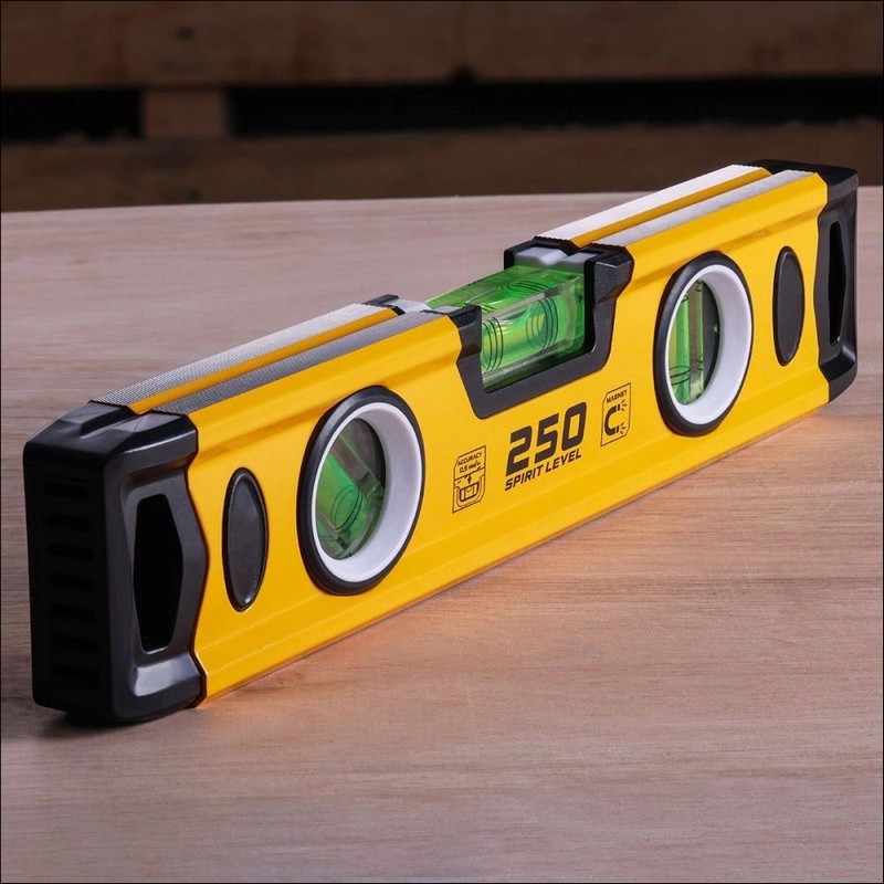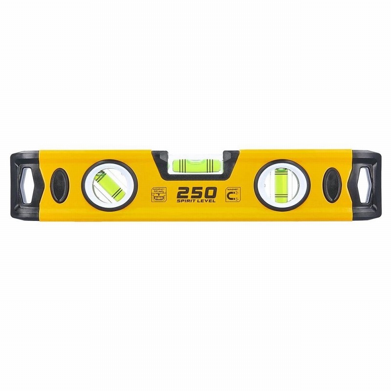 - Ultra-durable Material: This robust spirit level boasts extruded aluminium construction (1.4 mm thick), and the powder-coated finish prevents corrosion. In addition to its durable design, this 250mm spirit level is also lightweight, which makes it ideal for carrying and using for long periods