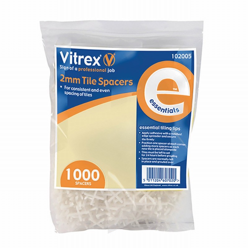 Vitrex VIT102005 Essential Tile Spacers 2mm Pack of 1000 8 in stock Barcode:5011204607020Cat No:VIT102005£4.50 £3.75 8 in stock Add to saved itemsYou have saved this item Add to saved items Vitrex VIT102005 Essential Tile Spacers 2mm Pack of 1000 quantity Add to basket About the product Characteristic