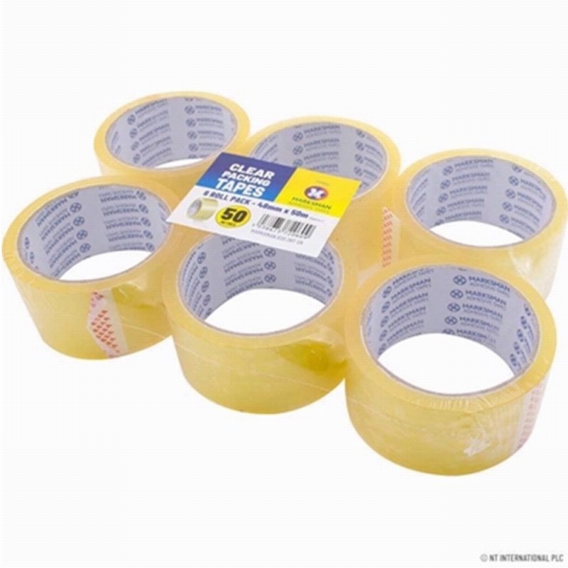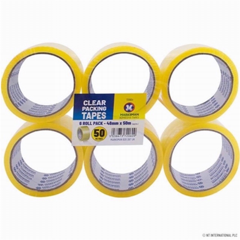 - Ideal for wrapping boxes and cartons, the Marksman Clear Packing Tape is tear and burst resistant for long-lasting fixes.