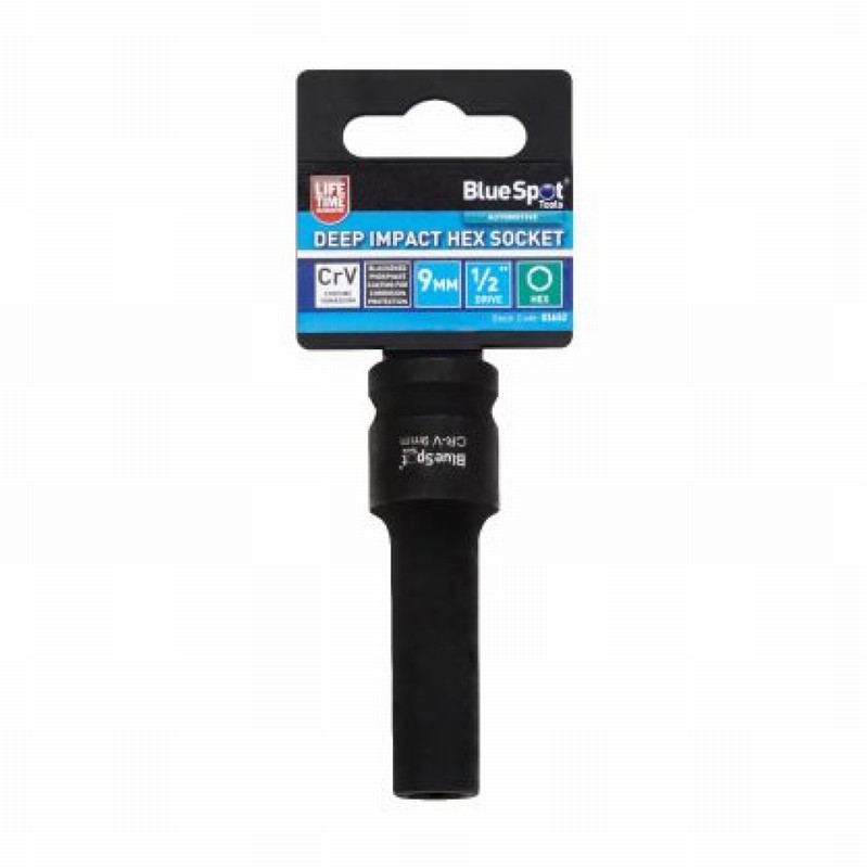 The Blue Spot Tools Individual Deep Impact Hex Socket (9mm) is manufactured from chrome vanadium for increased durability.