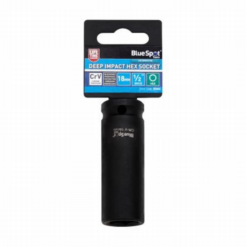 The Blue Spot Tools Individual Deep Impact Hex Socket (18mm) is manufactured from chrome vanadium for increased durability.