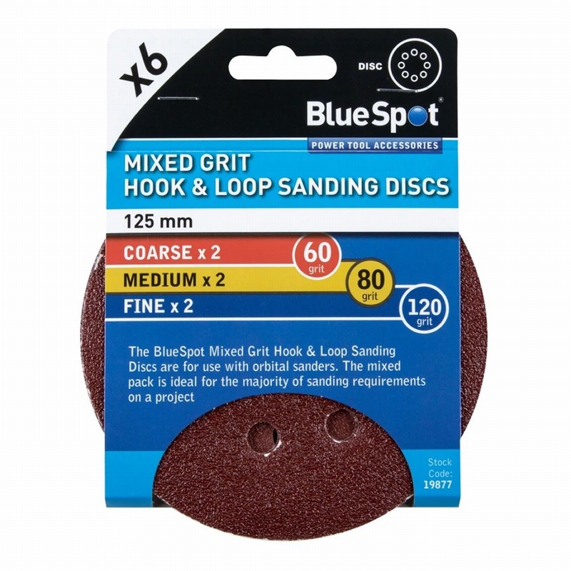 Blue Spot Tools 19877 – 6 Pack 125mm Mixed Grit Sanding Disc 5 in stock Barcode:5028734198775Cat No:19877£2.50 £2.08 5 in stock Add to saved itemsYou have saved this item Add to saved items Blue Spot Tools 19877 - 6 Pack 125mm Mixed Grit Sanding Disc quantity Add to basket About the product Characteristic