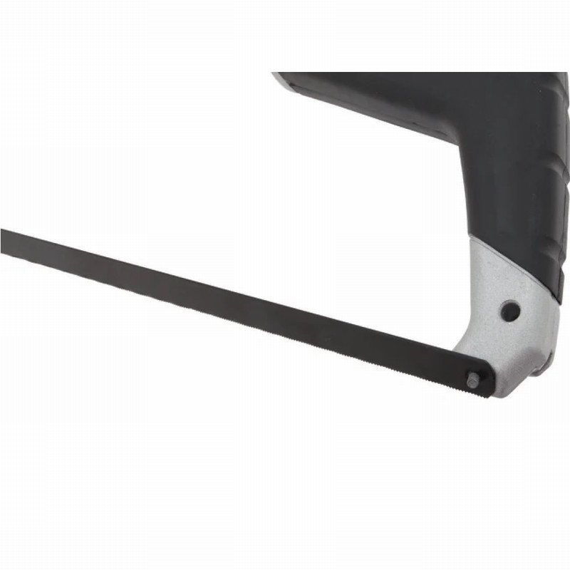 Fitted with a comfortable non-slip handle and front grip ensures positive handling and control. The hacksaw front handle can become a pistol grip jab saw. You can also attach a long reach blade to the front frame. It also features on-board blade storage.