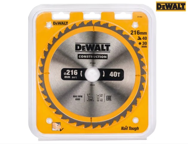DeWalt DT1953QZ Construction Circular Saw Blade 216x30mm 40T