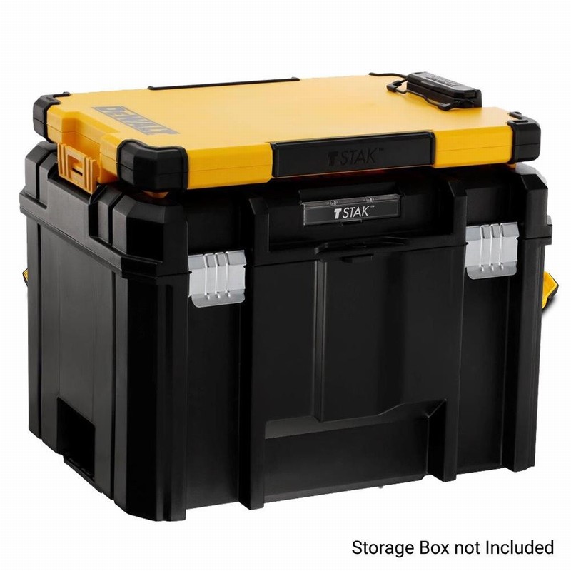 The DeWalt LED A4 Clipboard T-STAK DWST82732-1 is an ideal clipboard for trade professionals as well as DIY enthusiasts. It has integrated 180° LED lights, making working in the dark and at night much easier. It has been designed to be TSTAK-compatible, so attaches onto T-Stak boxes making it easy to store safe and less space-consuming. It has a nylon interior organiser pouch for safe storage of documents. The two metal clips help to keep important papers stored and the sturdy surface makes writing in difficult conditions easier. It has an internal zipped compartment and can be opened one-handed via the auto-latch.