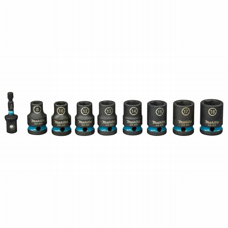 Makita E-16645 9 Piece 1/2” Impact Socket Set with Hex Adapter