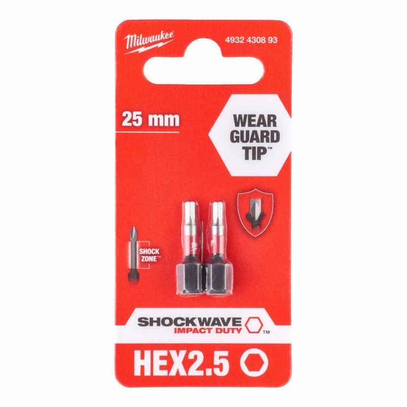 Milwaukee 4932430893 Hex2.5 25mm SHOCKWAVE Screw Bits – 2 pieces