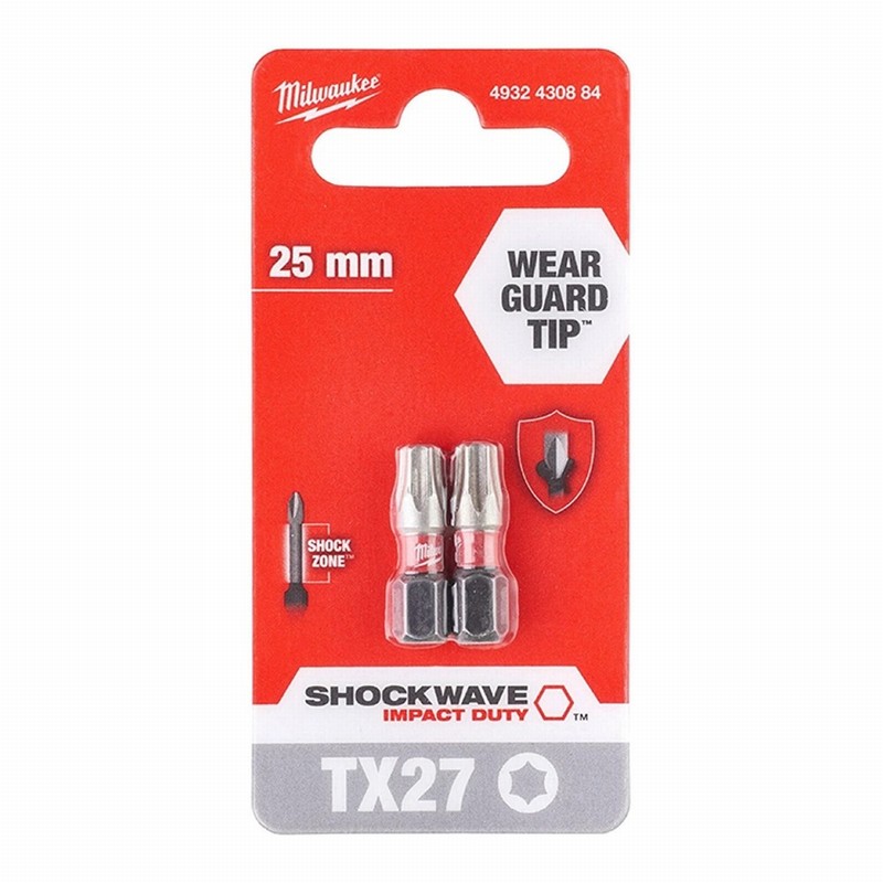 Milwaukee 4932430884 TX27 25mm SHOCKWAVE ScrewBits – 2 pieces