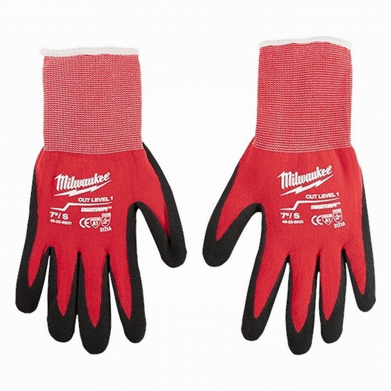 The Milwaukee 4932471416 Cut Level 1 Dipped Gloves M are durable and hardwearing gloves designed to deliver comfort and dexterity whilst handling material and performing light construction work. Each palm is reinforced with a nitrile texture, and the SMARTSWIPE™ palm and fingertips enable you to use touch screen devices without removing gloves. These gloves are European Certified for cut protection: EN420 and EN388:2016 (3121A).