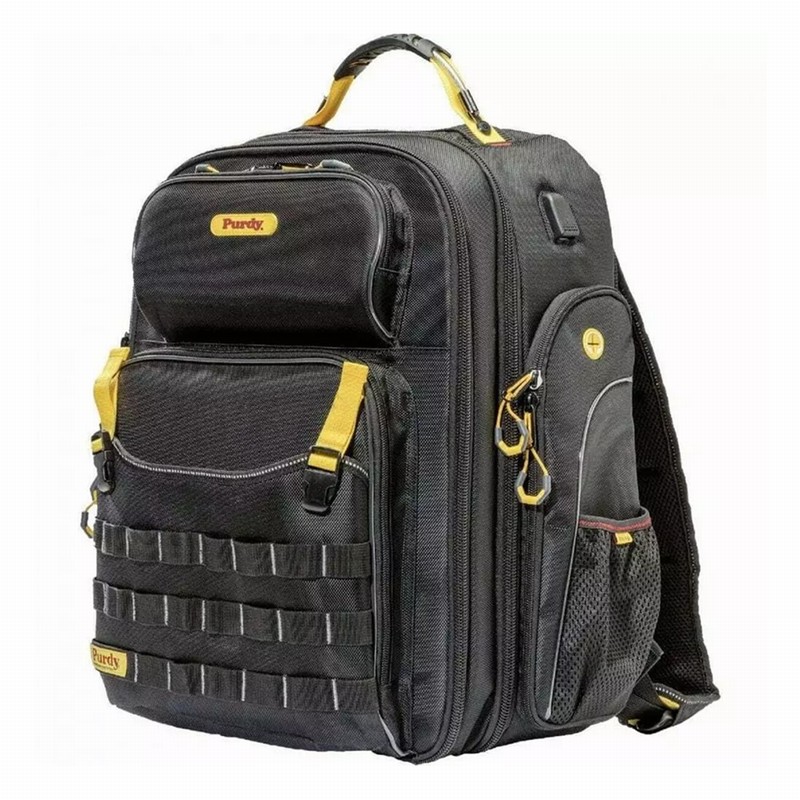 - DESIGNED WITH YOU IN MIND: the Purdy Painter’s Backpack is organized with a specialized storage system made for professional painters and contractors; it’s the first of its kind, made by pros for pros; measures 13.5x11x19.5-inches