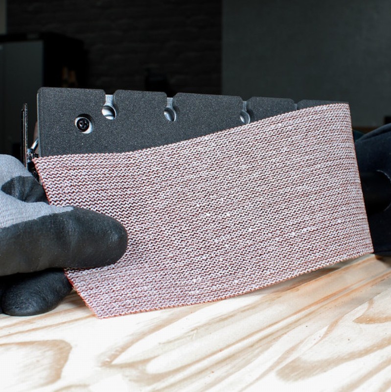 Ideal for hand-sanding or cut to size to fit on 1/2″, 1/3″ and 1/4″ sheet sanders, the Vaunt X Mesh Net Sanding Roll is suitable for use on wood, paint, plaster, metal and plastic, and the hook & loop backing allows for quick and straightforward attachment.