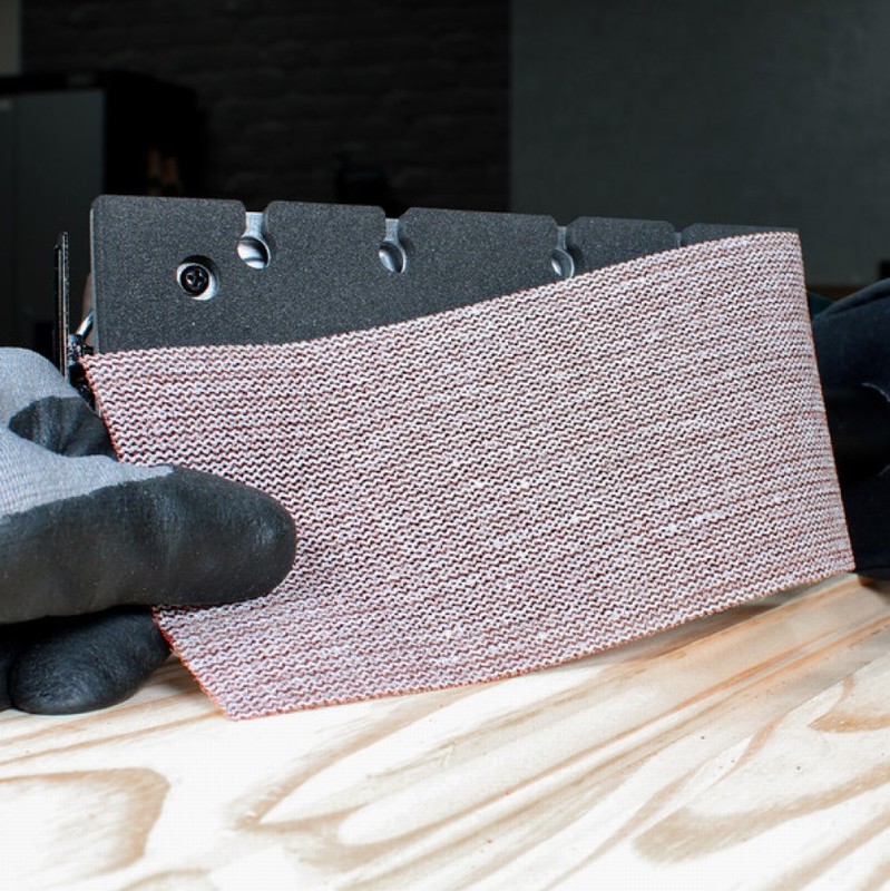 Ideal for hand-sanding or cut to size to fit on 1/2″, 1/3″ and 1/4″ sheet sanders, the Vaunt X Mesh Net Sanding Roll is suitable for use on wood, paint, plaster, metal and plastic, and the hook & loop backing allows for quick and straightforward attachment.