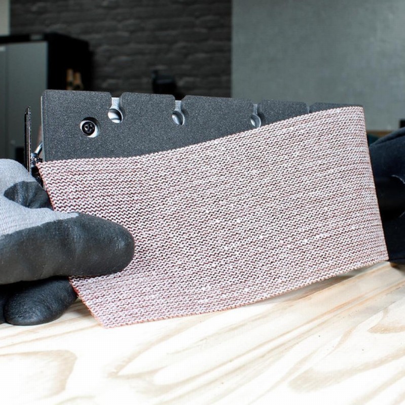 Ideal for hand-sanding or cut to size to fit on 1/2″, 1/3″ and 1/4″ sheet sanders, the Vaunt X Mesh Net Sanding Roll is suitable for use on wood, paint, plaster, metal and plastic, and the hook & loop backing allows for quick and straightforward attachment.